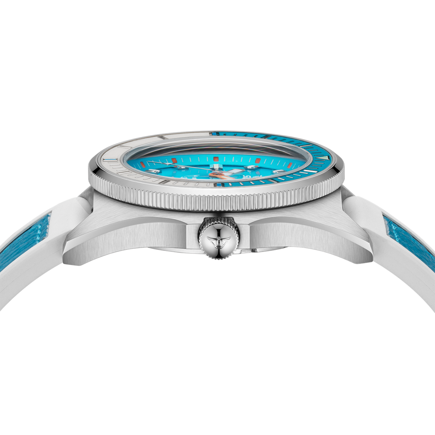 Model Matic S Light Blue HydroLeather to hołd dla dziedzictwa marki i świata podwodnych przygód. Jego jasnobłękitna tarcza przywołuje skojarzenia z krystalicznie czystą wodą Morza Śródziemnego, w której Jacques Mayol bił rekordy w nurkowaniu na wstrzymanym oddechu. To zegarek inspirowany wolnością, spokojem i potęgą natury – a jednocześnie gotowy na każde wyzwanie.