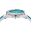 Model osadzono na unikalnym pasku typu HydroLeather, będącym połączeniem gumowej wytrzymałości z elegancją skórzanego wykończenia. Dwukolorowe zestawienie bianco i azzurro nawiązuje do stylu włoskiego wybrzeża – z jednej strony stylowy, z drugiej – gotowy na kontakt z wodą. Pasek o szerokości 19 mm zakończony jest klasyczną sprzączką 18 mm.