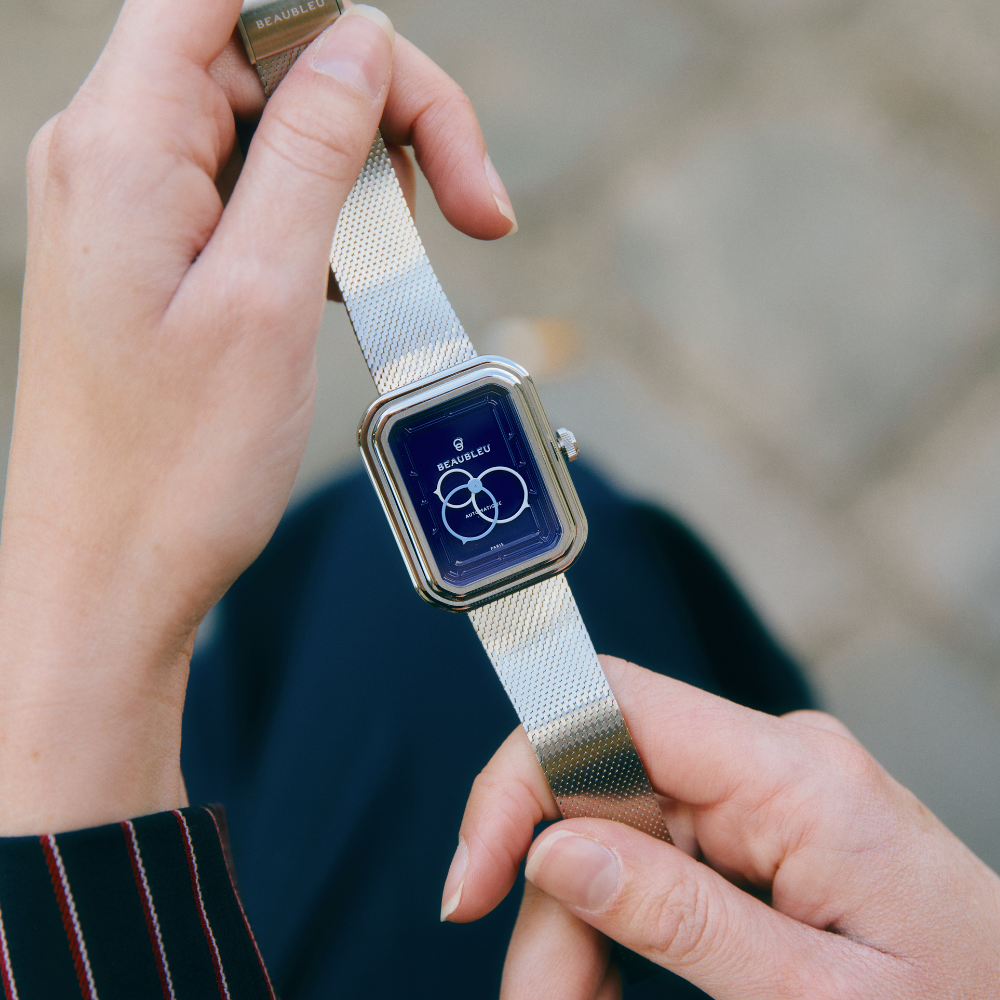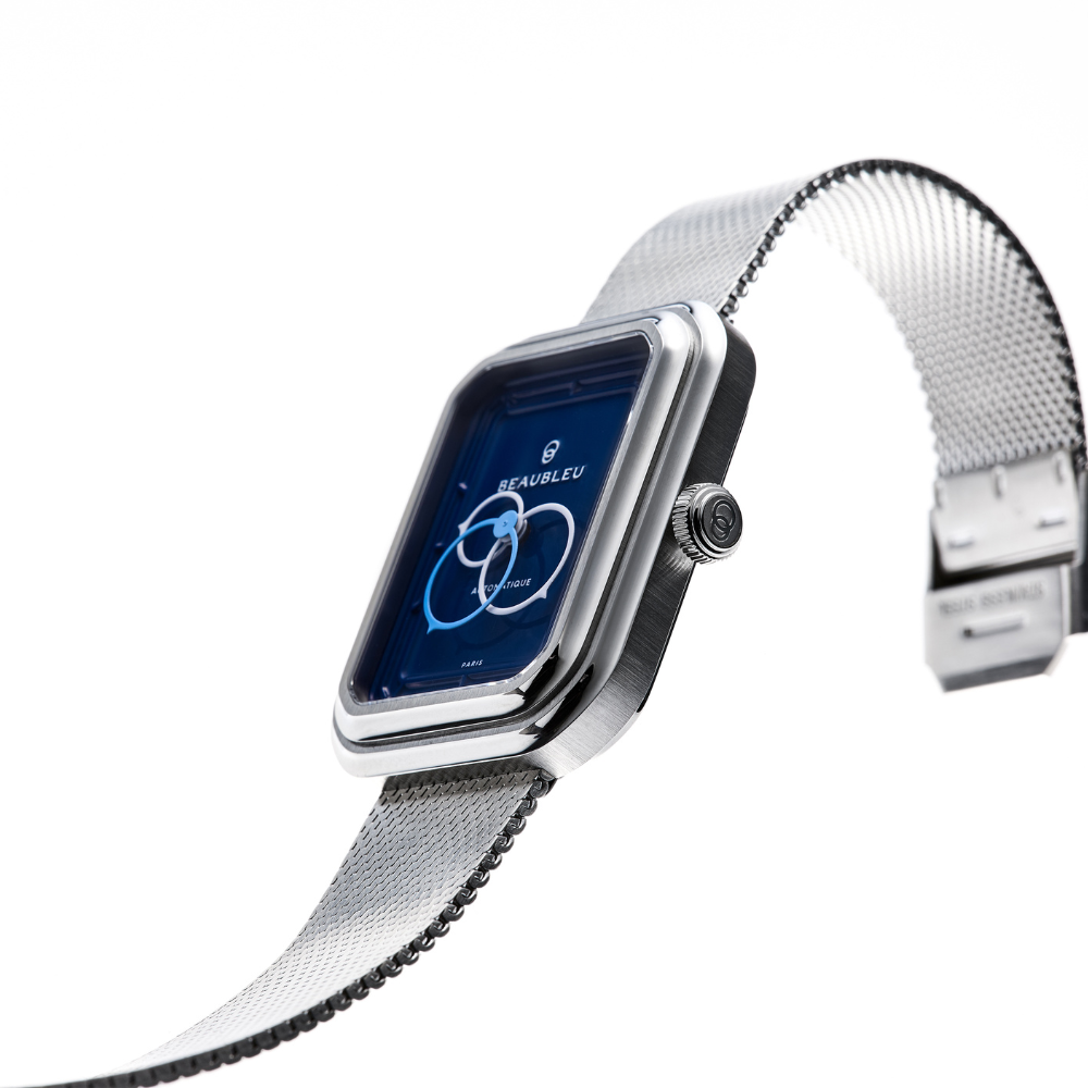 Paryska marka Beaubleu od początku traktuje czas jako materię artystyczną. Jej znakiem rozpoznawczym są okrągłe wskazówki, które nadają kompozycji płynność i symbolicznie odchodzą od klasycznego, liniowego postrzegania czasu.