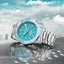 Zegarek Nereide GMT Cielo to zegarek, który przyciąga uwagę elegancją i subtelnością. Jego koperta o średnicy 39 mm wykonana jest z wytrzymałej stali nierdzewnej 316L, co zapewnia trwałość i stylowy wygląd. Turkusowa tarcza z matowym wykończeniem nawiązuje do kolorów nieba, tworząc urzekający efekt wizualny. Mechanizm Seiko NH34A z funkcją GMT umożliwia śledzenie dwóch stref czasowych, idealny dla podróżników.
