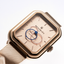 Smukła koperta o wymiarach 30 × 39 mm i grubości 8,6 mm została wykonana ze stali szlachetnej 316L i wykończona w odcieniu różowego złota. Zestawienie powierzchni polerowanych i szczotkowanych oraz wklęsły bezel nadają bryle głębi i podkreślają jej architektoniczny charakter.